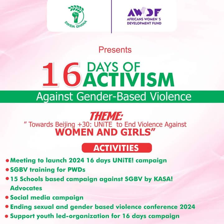 SWIDA Ghana is embarking on a 16-day campaign to champion advocacy on the rights of women and girls.