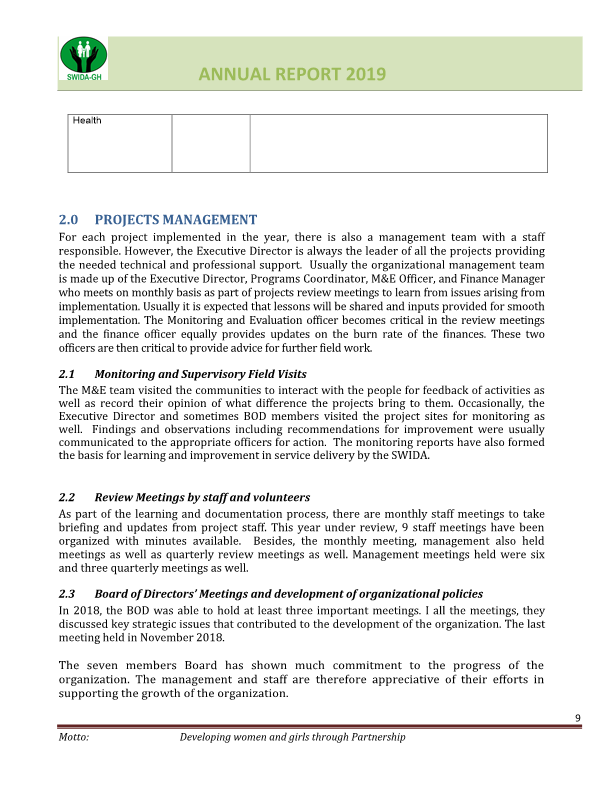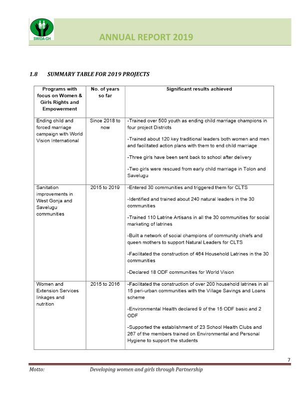 SWIDA Annual Report for 2019