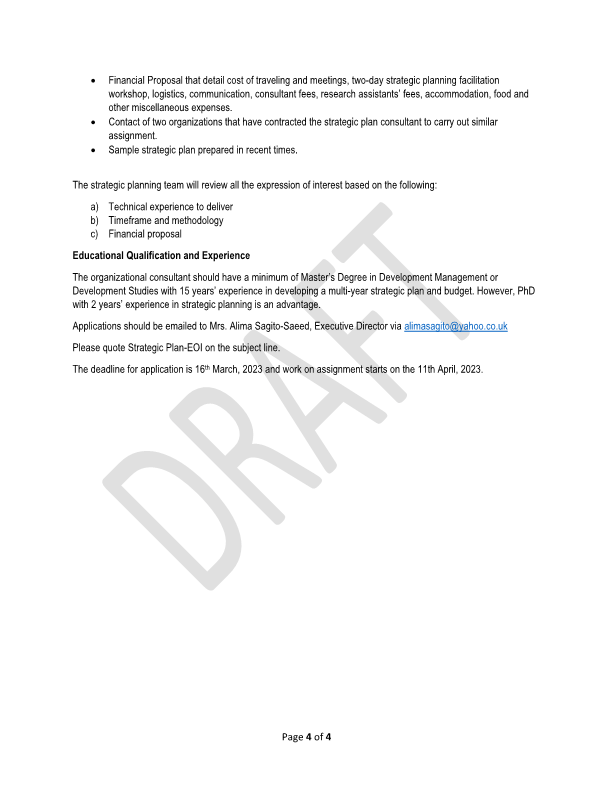 TOR FOR STRATEGIC PLAN